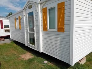 À vendre : Mobil-home de 2 chambres avec salon/séjour, cuisine équipée, salles de bain et WC séparés. Dimensions : 7,32 x 4 m. Année : 2007. Prix : 12000 €.