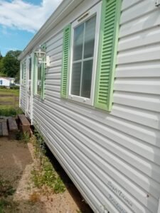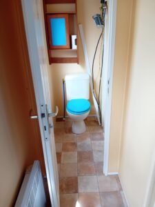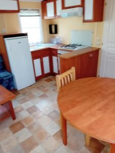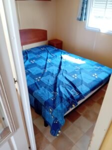 À vendre : Mobil-home de 2 chambres avec salon/séjour, cuisine équipée, salles de bain et WC séparés. Dimensions : 7,92 x 4 m. Année : 2006. Prix : 9800 €.