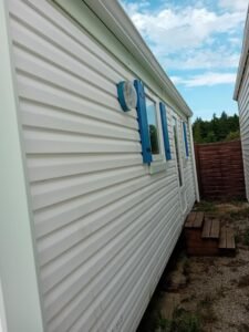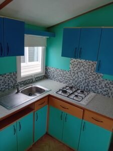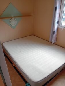 À vendre : Mobil-home de 2 chambres avec séjour, cuisine équipée, salles de bain et WC séparés. Dimensions : 6 x 3,80 m. Année : 2005. Prix : 4000 €.