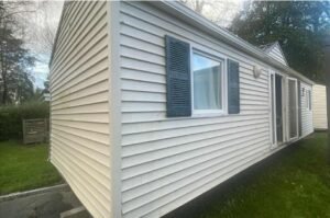 À vendre : Mobil-home de 3 chambres avec salon/séjour, cuisine équipée, salles de bain et WC séparés. Dimensions : 4 x 9,20m. Année : 2007. Prix : 18000 €.