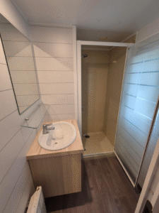 À vendre : Mobil-home de 2 chambres avec salon/séjour, cuisine équipée, salles de bain et WC séparés. Superficie : 21 m². Année : 2011 Prix : 11000 €.